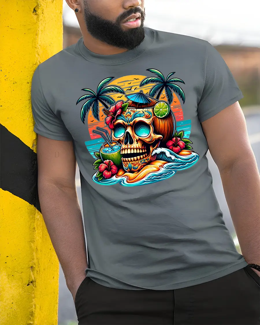 Crafted from premium, breathable cotton, this tropical skull tee is soft, lightweight, and perfect for summer adventures.