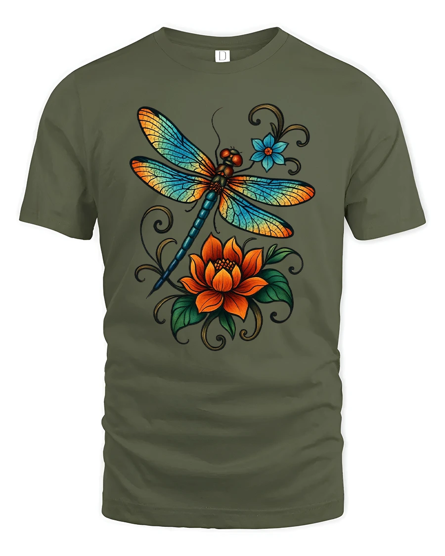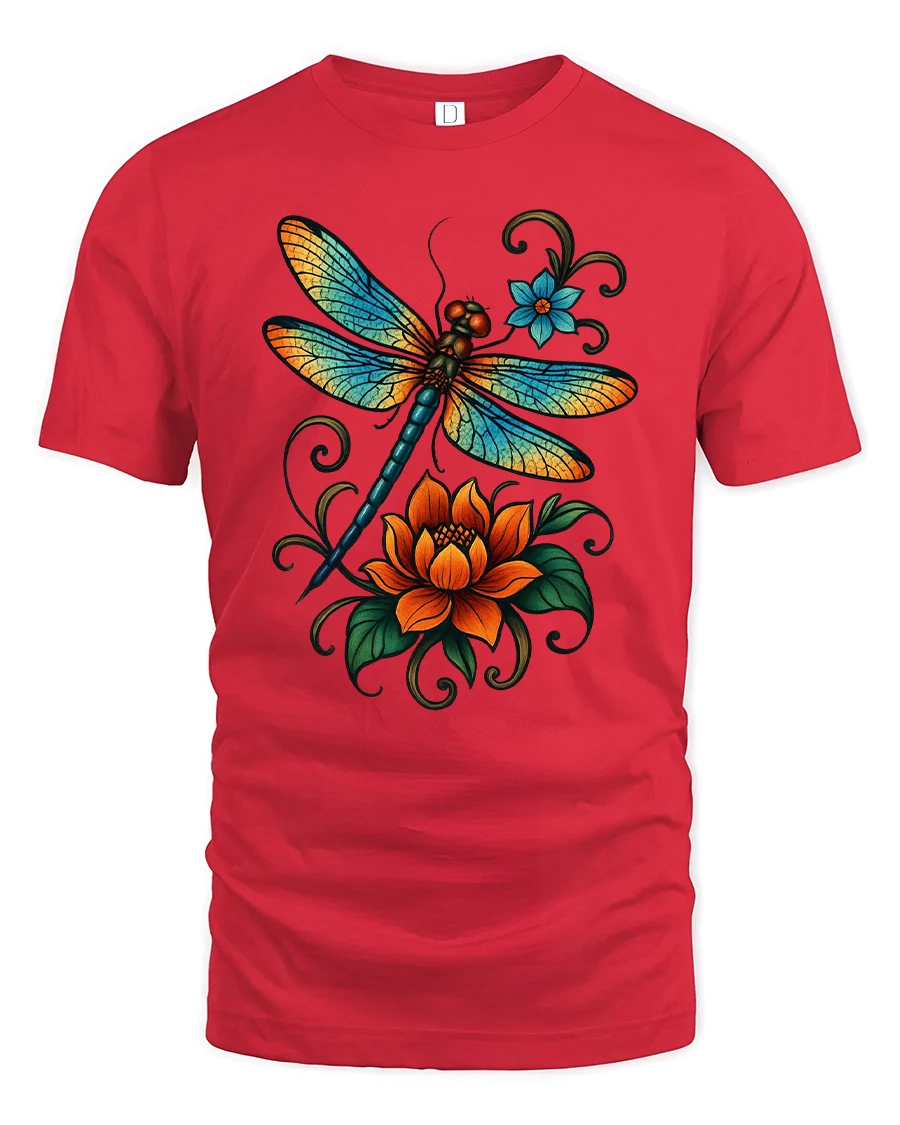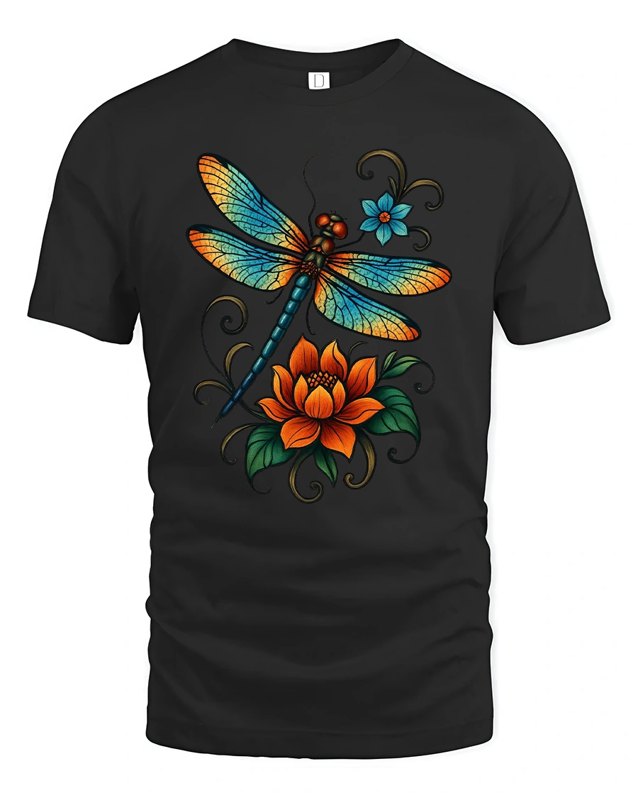 Celebrate color and creativity with the Vibrant Dragonfly Floral Art T Shirt Nature Bloom, a stunning design that blends the elegance of a dragonfly with radiant floral artwork. The detailed wings shimmer with bright hues of blue and orange, resting above a bold blooming flower that adds a touch of artistic charm. This dragonfly t shirt captures the beauty of nature in a way that feels lively, fresh, and expressive.