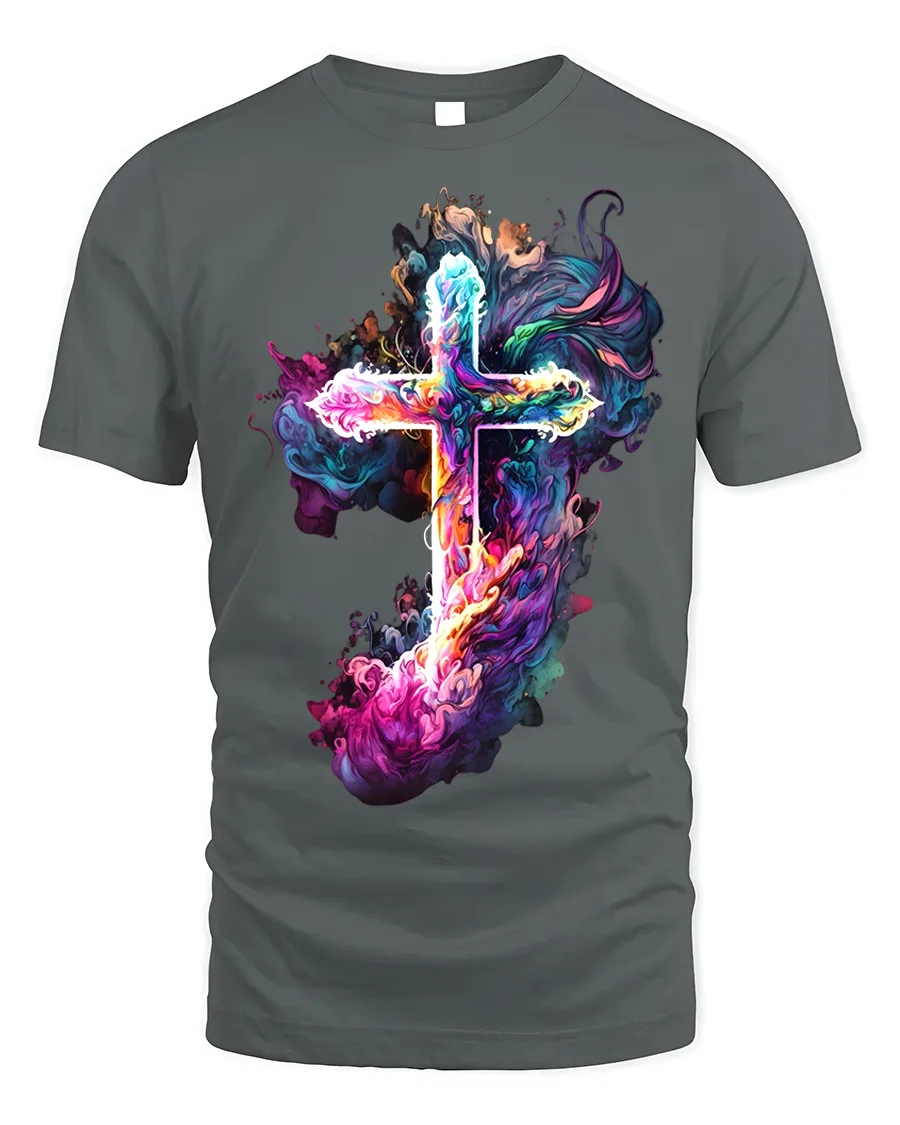 Express your faith with a burst of color in this Vibrant Smoke Cross T-Shirt.
