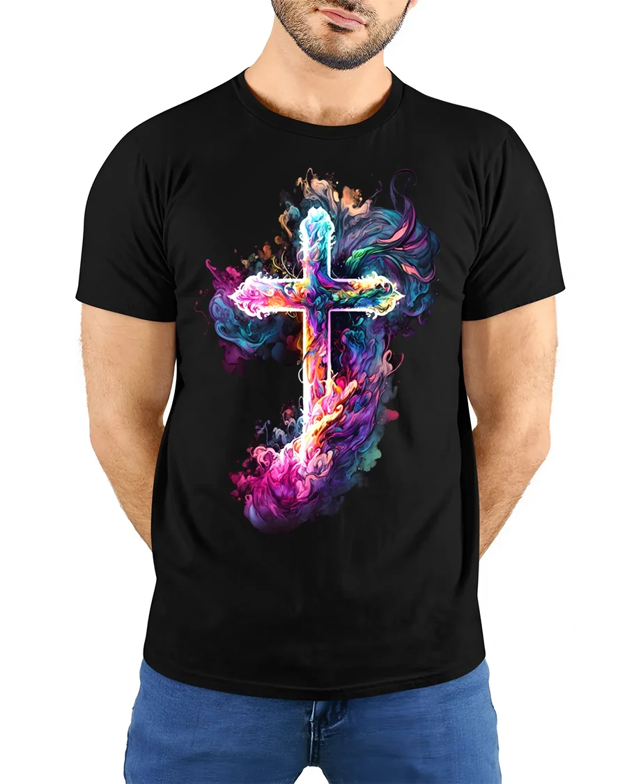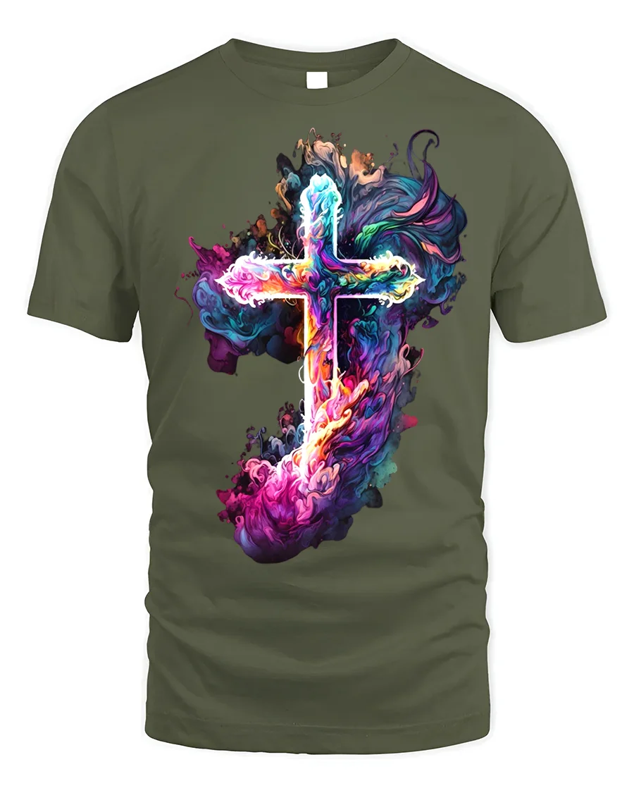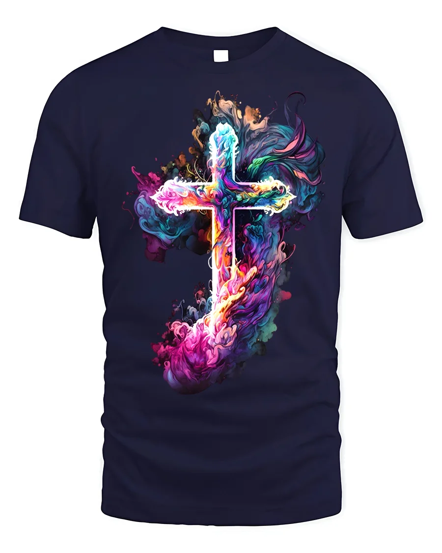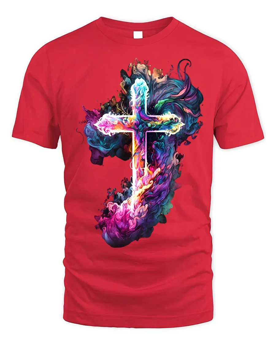 Tags: abstract cross design, artistic religious tee, Christian t-shirt, colorful cross, comfortable t-shirt, divine art shirt, expressive cross, faith apparel, religious t-shirt, Smoke cross t-shirt, spiritual art tee, spiritual gift, unique worship tee, US faith shirt, vibrant cross shirt