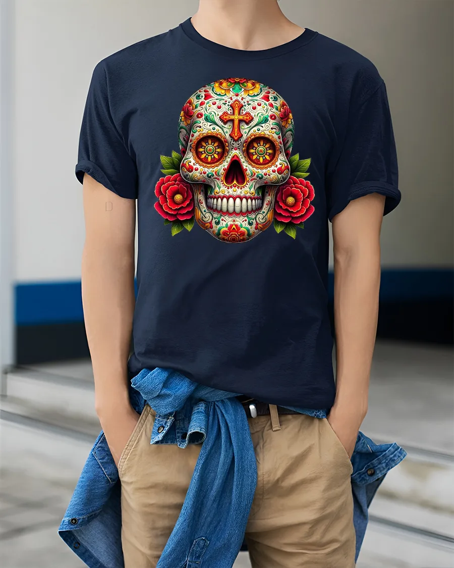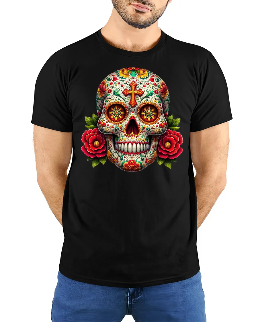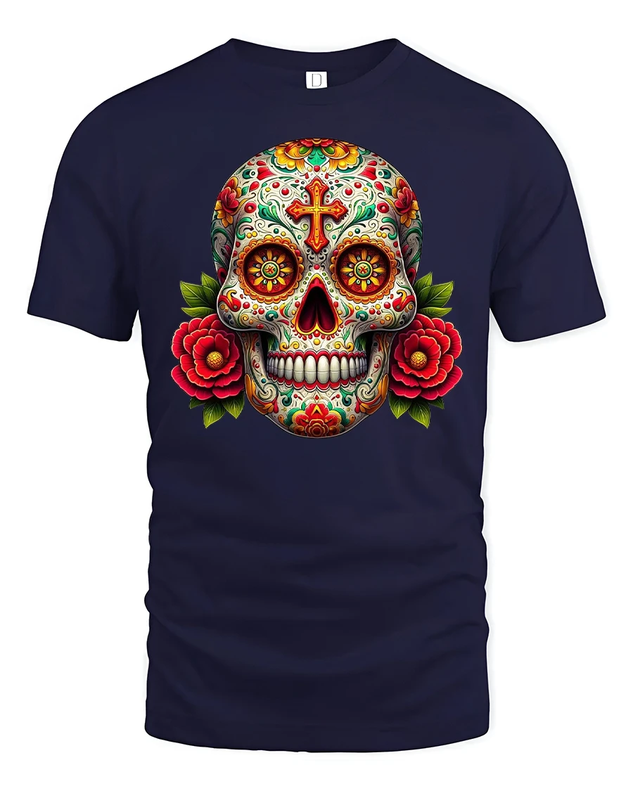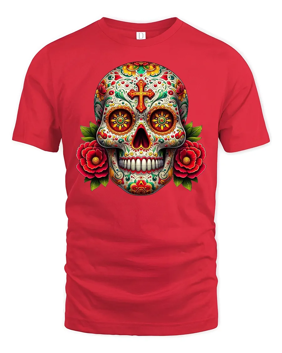 Crafted for comfort and style, this sugar skull t-shirt pairs easily with jeans, skirts, or layered outfits, making it perfect for both casual days and themed celebrations. It also makes an excellent gift for fans of Mexican art, skull designs, or vibrant cultural graphics.