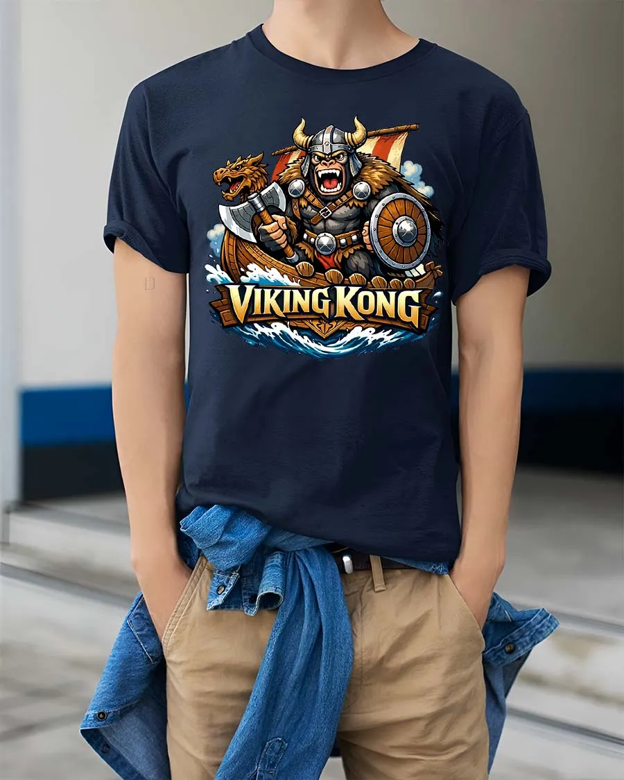 Viking Kong Warrior Norse Myth Retro Graphic T-Shirt Style combines legendary warrior spirit with bold artistic storytelling.