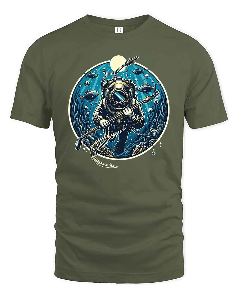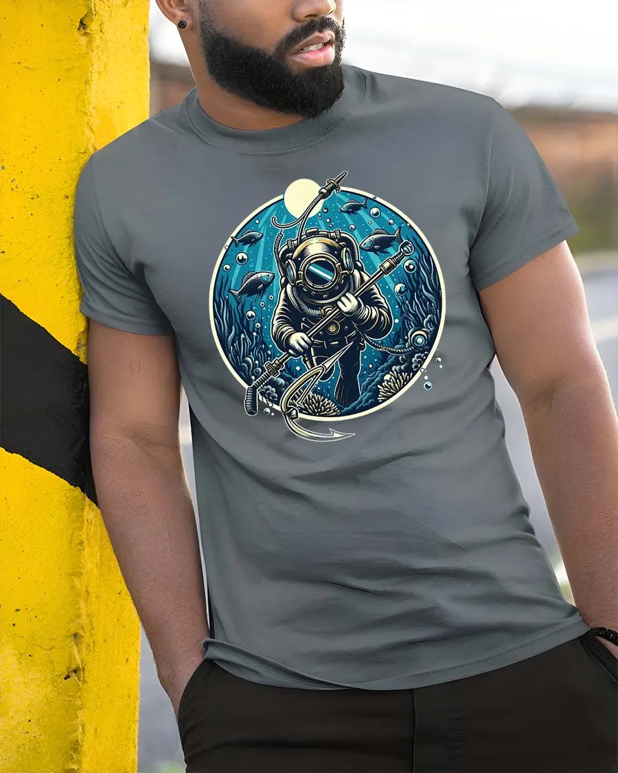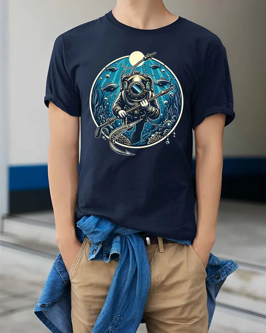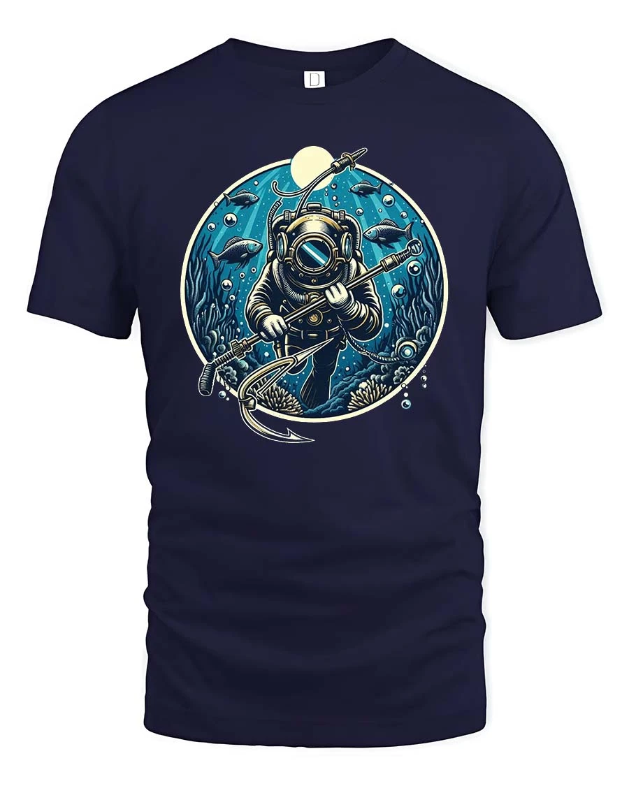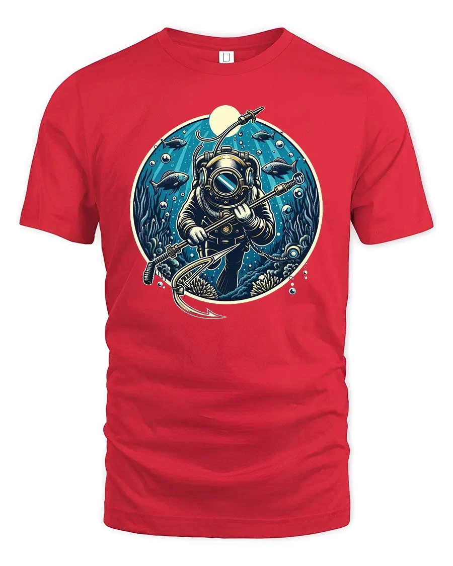 Crafted for everyday comfort, this t-shirt offers a soft feel and breathable fabric that keeps you comfortable throughout the day. The high-quality print highlights the intricate diver design and underwater elements, creating a bold vintage-inspired style that looks great whether you’re out with friends, traveling, or enjoying a relaxed weekend.