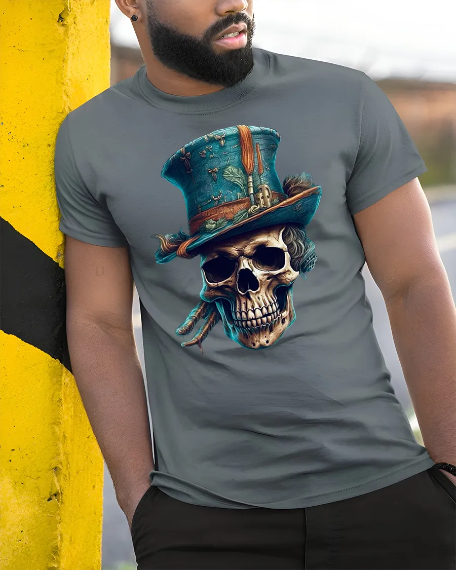 The Vintage Skull Top Hat Steampunk Gothic Art T-Shirt is crafted from soft, breathable cotton, ensuring lasting comfort while maintaining a durable print.