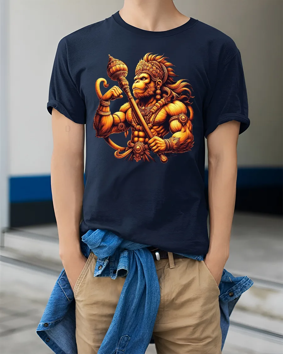 Show your bold side and carry the spirit of Hanuman wherever you go — strength, devotion, and positivity united in one powerful tee.