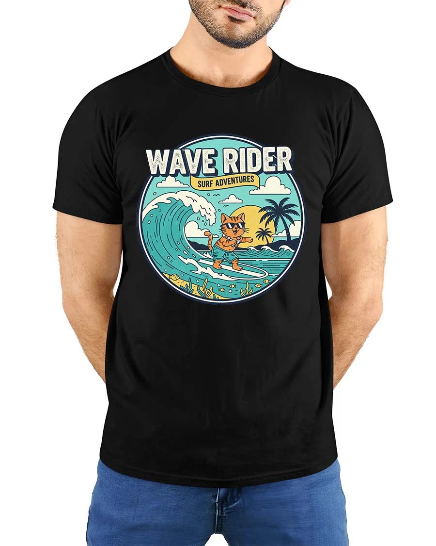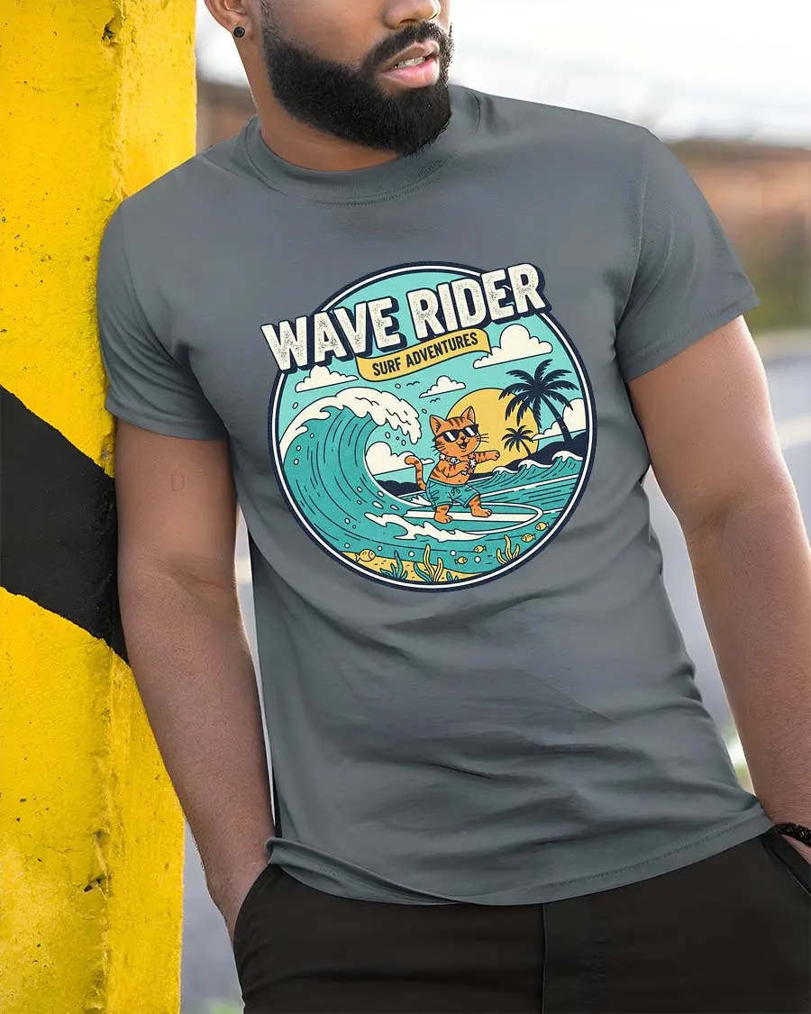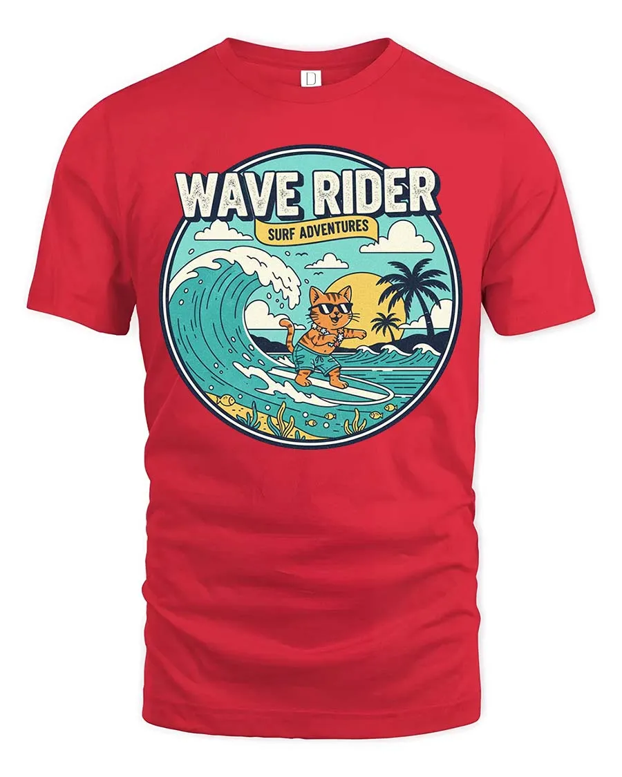 Wave Rider Surf Cat T-Shirt Vintage Beach Graphic Tee brings laid-back summer vibes to your everyday style.