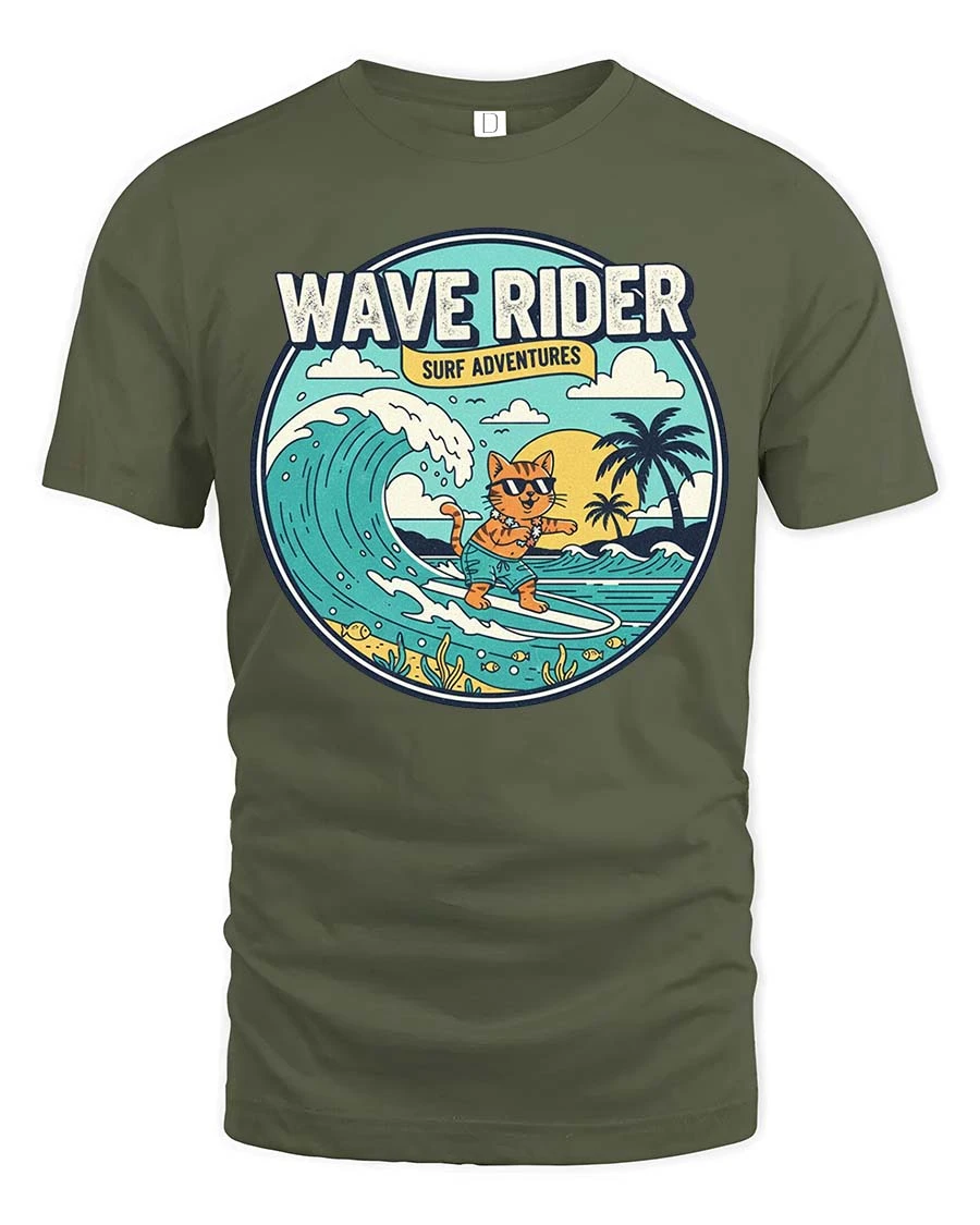 Add a cool coastal touch to your wardrobe with this unique wave rider t-shirt.