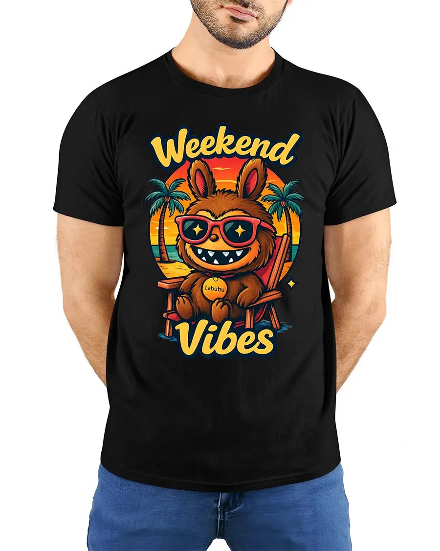 Weekend Vibes Funny Beach Cartoon Character t-shirt Soft combines comfort with playful visual appeal.