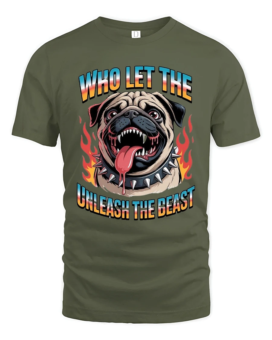 Who Let The Dog Unleash The Beast Funny Bulldog Graphic Tee delivers bold humor and unstoppable energy.