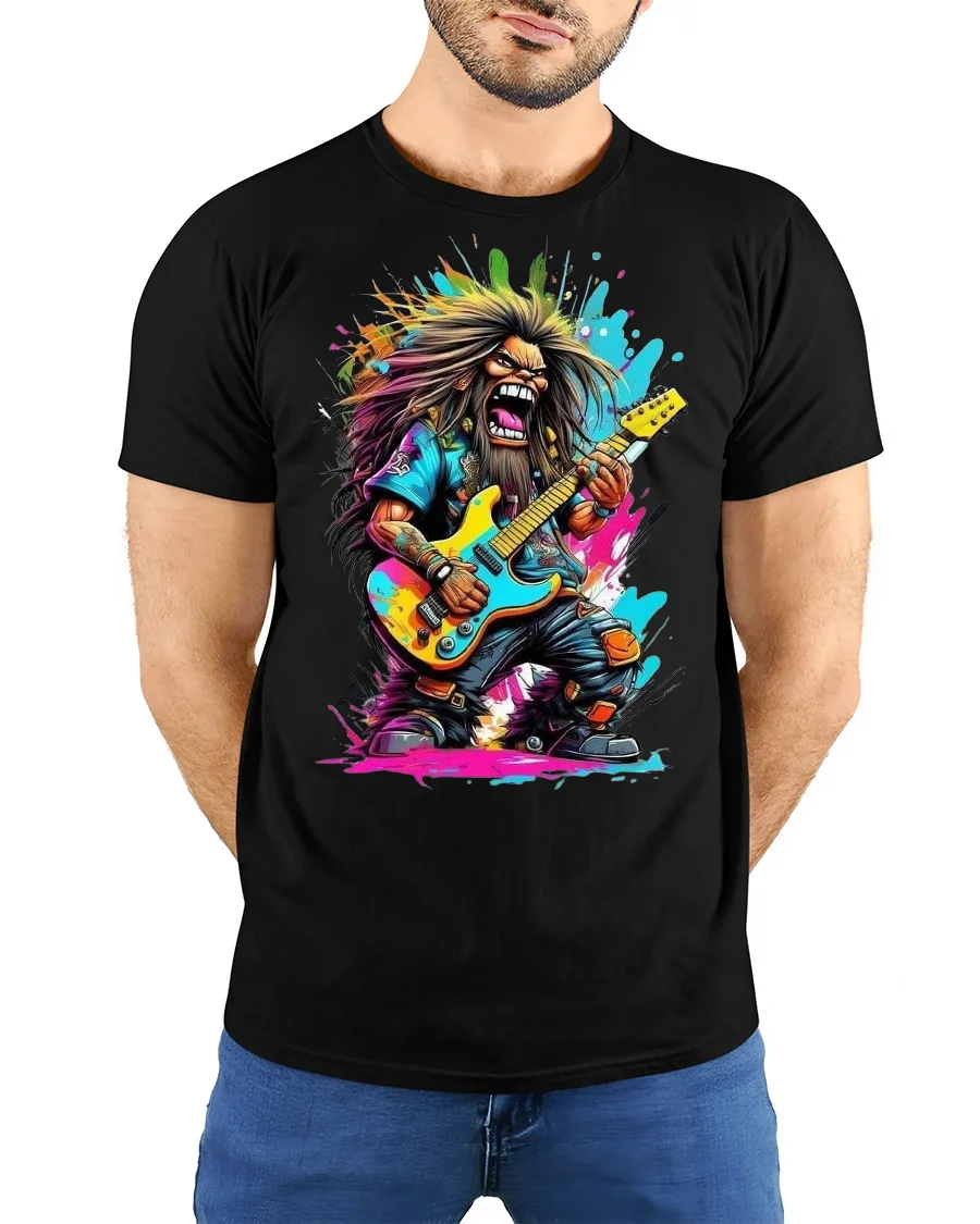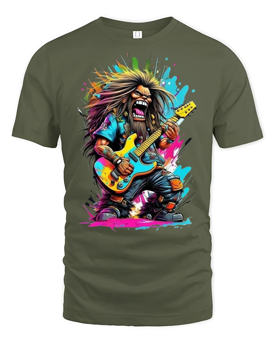 Wild Rock Guitarist Graphic T-shirt for Music Lovers is the ultimate choice for anyone who lives and breathes music. Featuring a wild-haired rocker shredding on a bright electric guitar with explosive colors in the background, this bold tee captures the raw energy of rock and roll. Perfect for festivals, concerts, or just showing off your love for heavy riffs, this shirt is designed to make a loud statement.