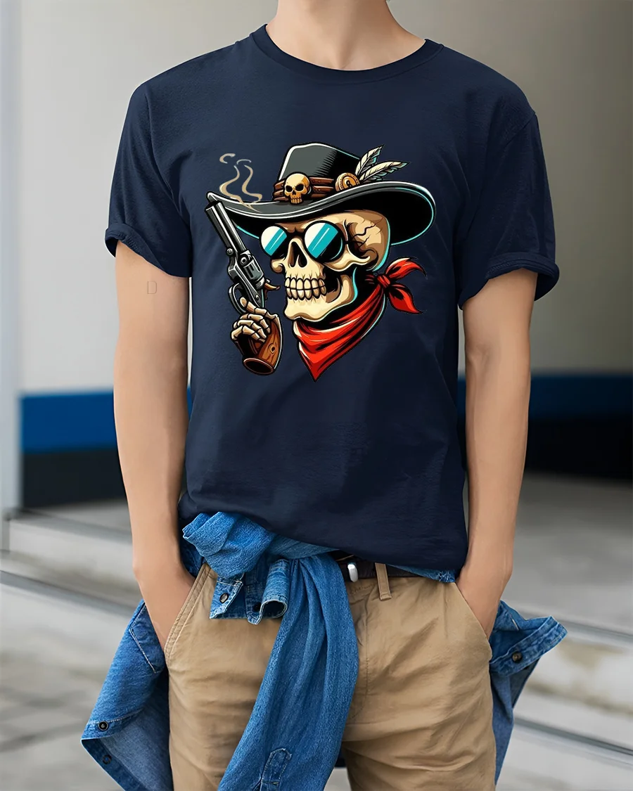 Wild West Skull Gunslinger Cowboy Illustration Bold Graphic Tee adds character confidence and edge to any wardrobe.