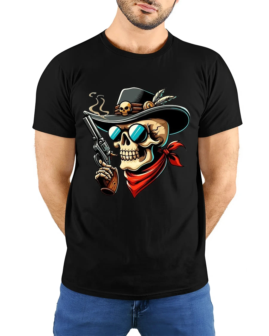 Wild West Skull Gunslinger Cowboy Illustration Bold Graphic Tee delivers a fearless western attitude with striking visual impact.
