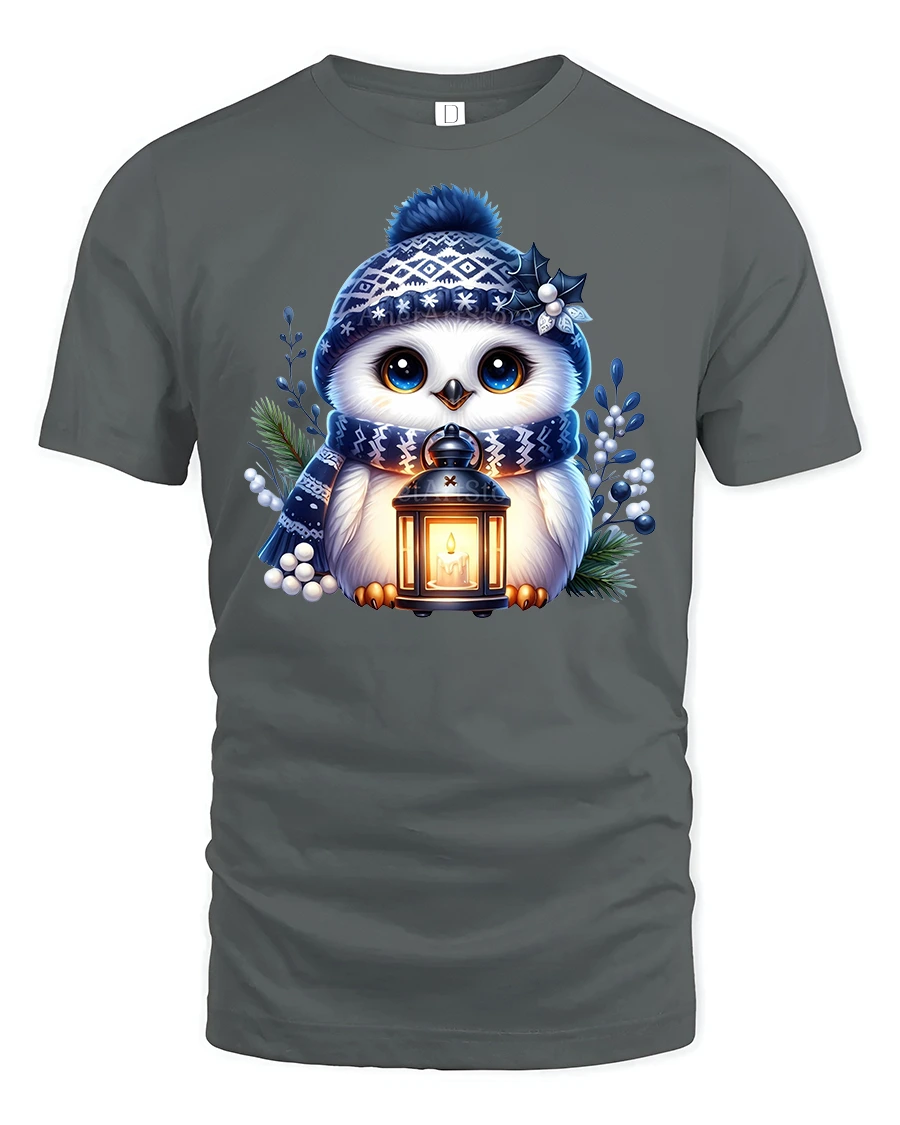 Winter Owl Lantern Cute Cozy Snow Season Graphic Tee brings warmth and joy to your winter wardrobe.