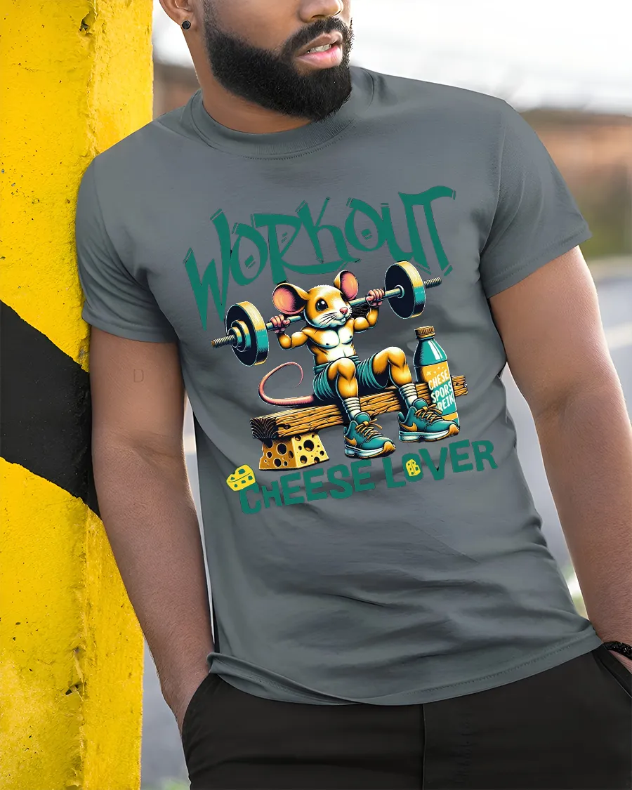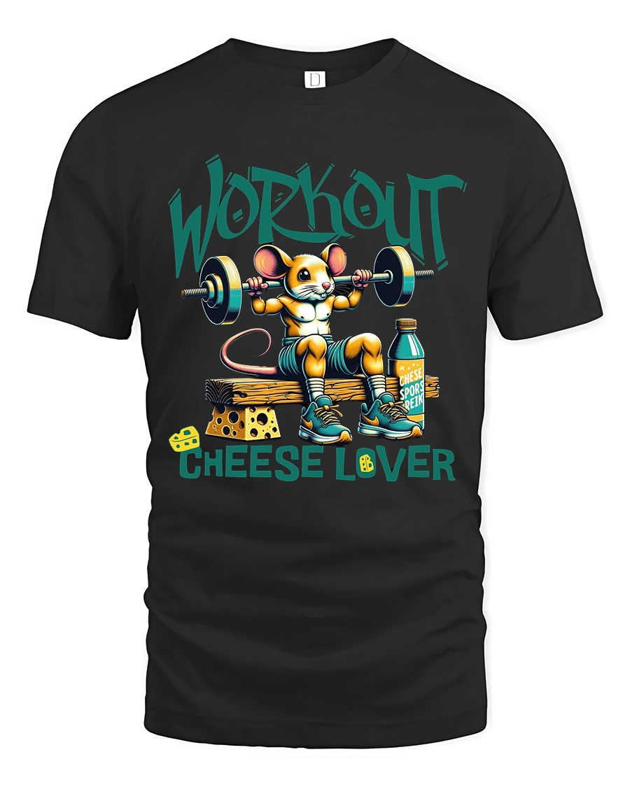 Workout Cheese Lover T Shirt Funny Gym Mouse Art combines adorable charm with fitness humor in one playful design.